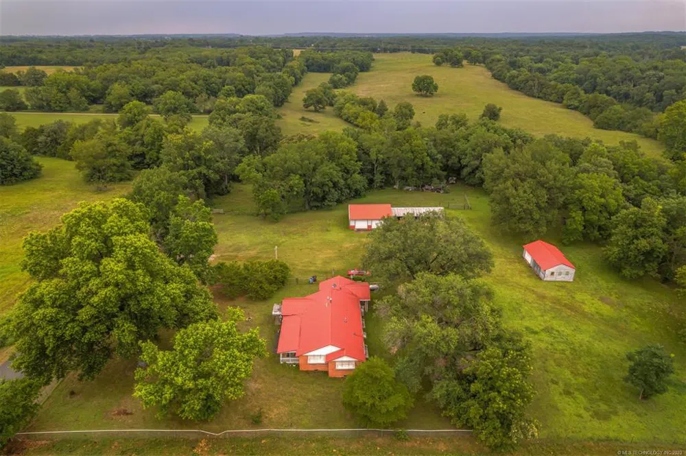 Don't wait come see this beautiful farm in Adair School District. Home is nestled in a wooded setting with 2 bedrooms and 2 bathrooms, has 2 barns and a 35x33 shop, storm shelter. Property backs to Big Cabin Creek, has a boat ramp, mature pecan trees, an abundance of wildlife and pastures to run cattle.
