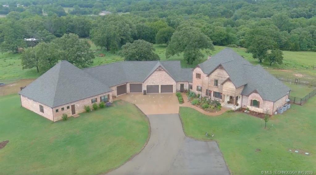 Beautiful Country Estate located on over 2 acres. Centrally located between OKC and Tulsa. Enjoy soaring 20ft. ceilings in great room. Chef’s kitchen with large pantry is perfect for entertaining. Each of the spacious 4 bedrooms feature an en suite. Primary suite with fireplace and spa like bathroom. Indoor sport court is a rare find. 3 laundry rooms. Attached 4th bedroom apartment, could be income generating. Enjoy sunsets on the front porch of this unique property.